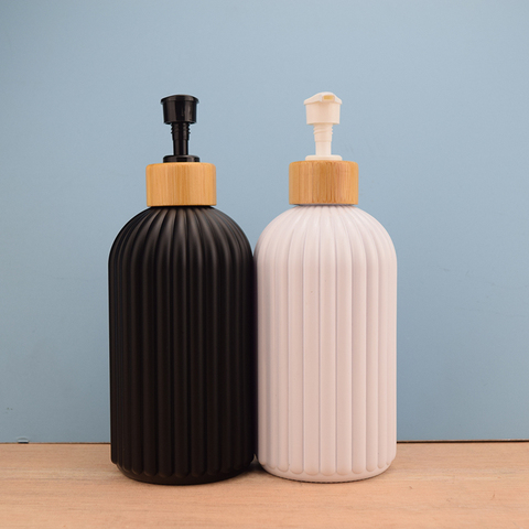 زجاجة الشامبو لشعر الفندق باللون الأسود غير اللامع ، مضخة ألوان خشبية