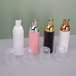 Bouteille cosmétique en plastique PET de 2oz 60ml avec pompe à mousse nettoyante pour le visage blanc noir rose et tête de pompe à mousse argentée/dorée