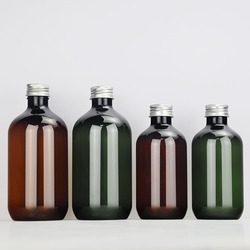 LOW quantité minimale de commande 10pcs Bouteille de shampoing boston PET personnalisée Vert Ambre 300ml 500ml Bouteille ronde en plastique avec bouchon en aluminium